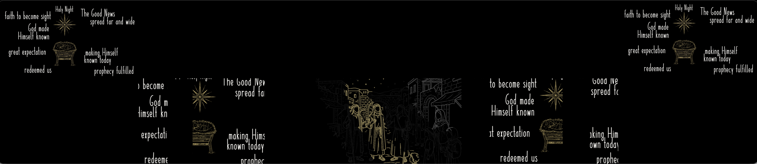Sometimes the best creative decisions come through iteration and rejection. The traditional Christmas color palette felt cheap and tasteless. Glow effects looked great on screen but were overwhelming in the actual room. The breakthrough was simplicity: white line art with strategic gold accents that signified holiness, importance, and gave the entire piece a more sophisticated, elevated feel.